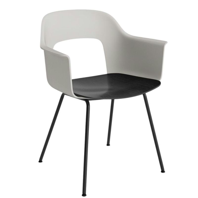 Layout Armchair 212, designet af Julien Renault med fokus på komfort, funktionalitet og bæredygtighed. Skal i min. 96% genanvendt plastik i flere farver, sæde i finér med forskellige finishes og slanke stålrørben for stabilitet og elegance. Stel i pulverlakeret stål. Alle dele kan adskilles for lang levetid. Ideel til kontor, restaurant, institutioner og hjem.