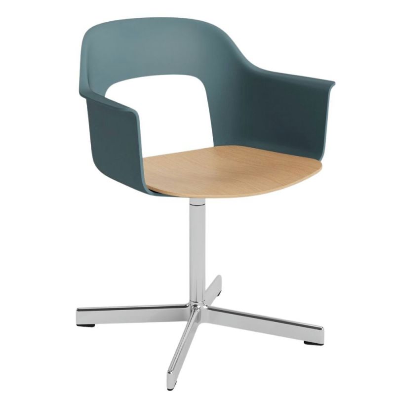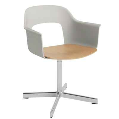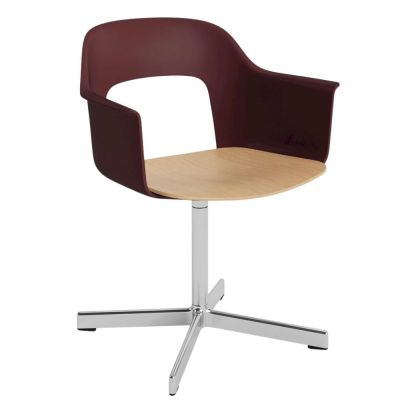 Layout Armchair 232, designet af Julien Renault med fokus på komfort, funktionalitet og bæredygtighed. Skal i min. 96% genanvendt plastik i flere farver, sæde i finér med forskellige finishes og drejefod med fire ben i poleret aluminium. Alle dele kan adskilles for lang levetid. Ideel til kontor og hjemlige miljøer.