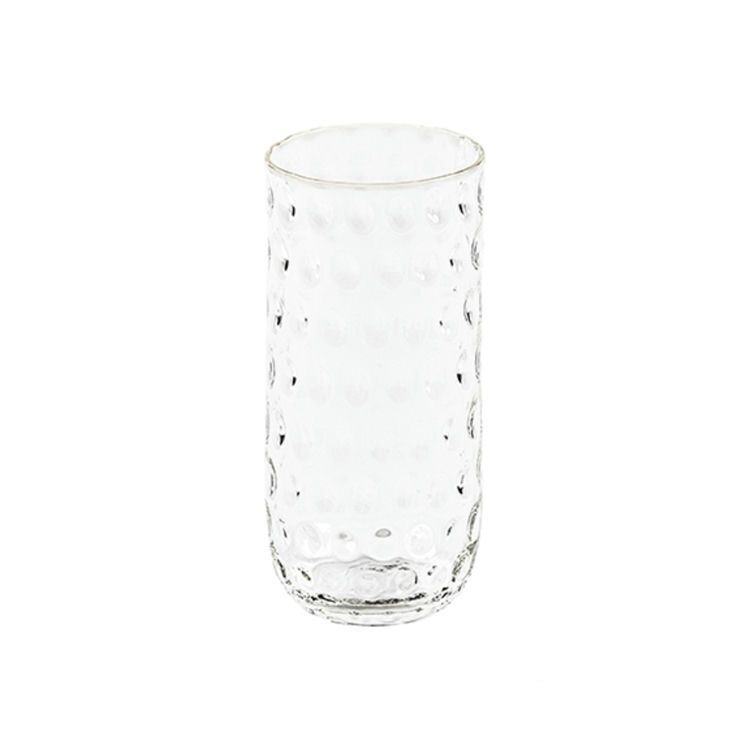 Kodanskas danska sommartumlare med mönster av stora droppar kan användas till både kalla och varma drycker, för förvaring av skrivredskap eller småsaker. Varje glas är munblåst och har en rundad träform, vilket säkerställer att alla glas har samma storlek, även om vart och ett har sin egen unika färg och mönster.