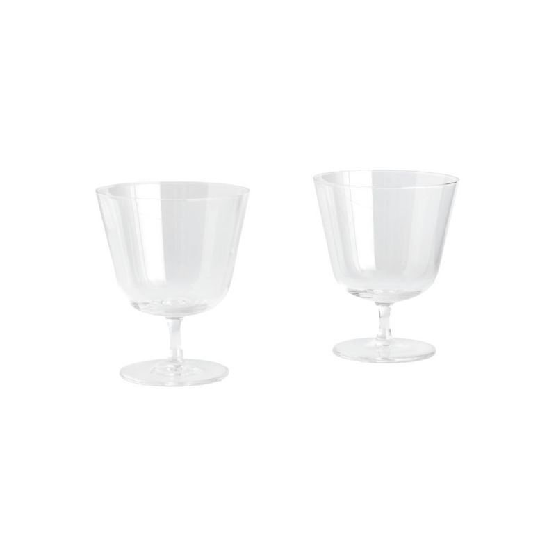 Curve Stem Glass set om 2. Curve Stem Glass har en elegant silhuett med en lätt utåtböjd kant som ger ett enkelt och sofistikerat utseende. Glasen är munblåsta av fint glas med 20 % återvunnet material och har både en rymlig skål och en smal stjälk, perfekt för vatten, vin eller andra drycker. Säljs som ett set om två och matchar vackert med HAYs andra bågar. Perfekt för både vardagsbruk och speciella tillfällen.