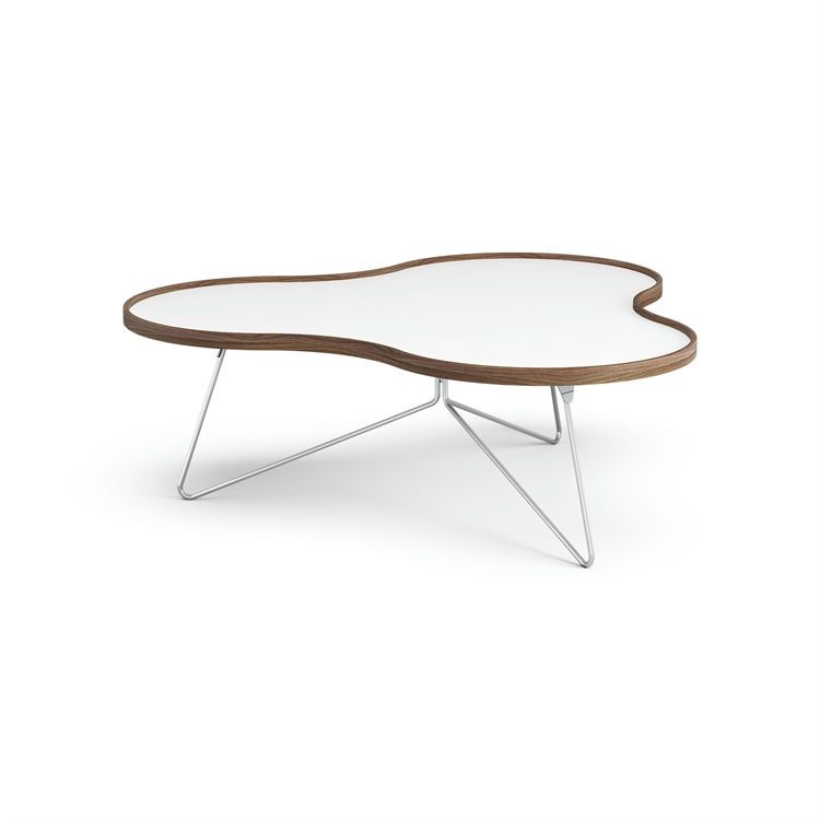 Swedese Flower Sofabord 114 x 107 Vit Laminat / Valnöt Naturlak / Krom - H39cm