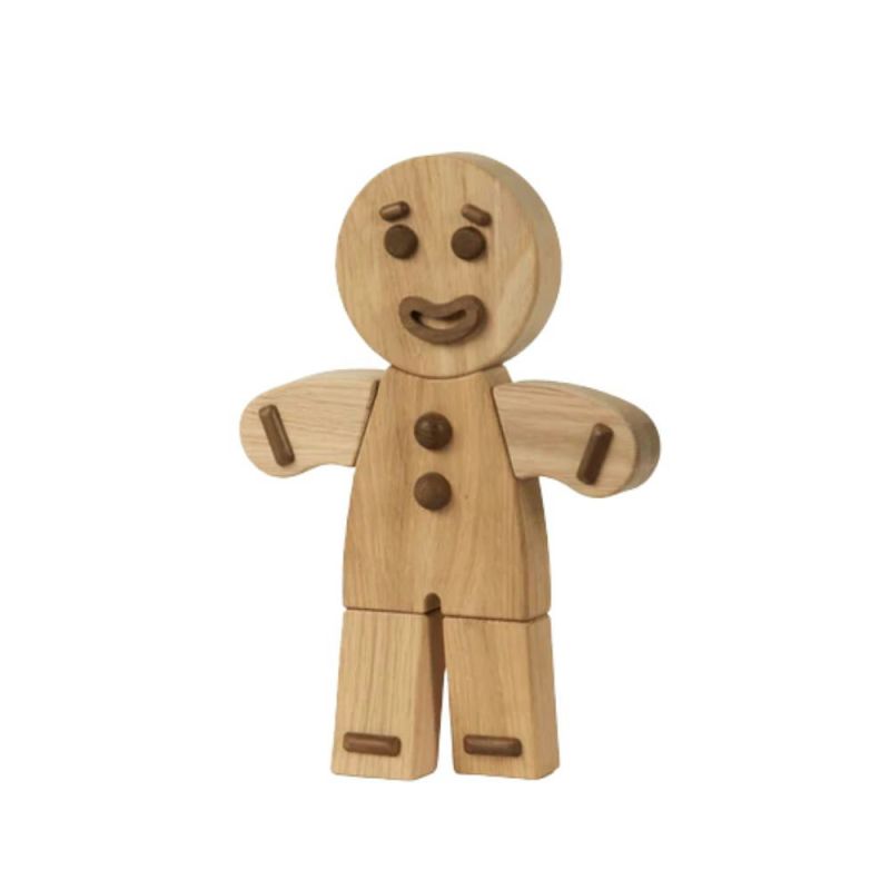 Den klassiska pepparkaksgubben nu i massiv ek i två färger. Sammanfogad med magneter så uttrycket kan varieras. Ett lekfullt designobjekt som kombinerar nostalgi och modernt hantverk.