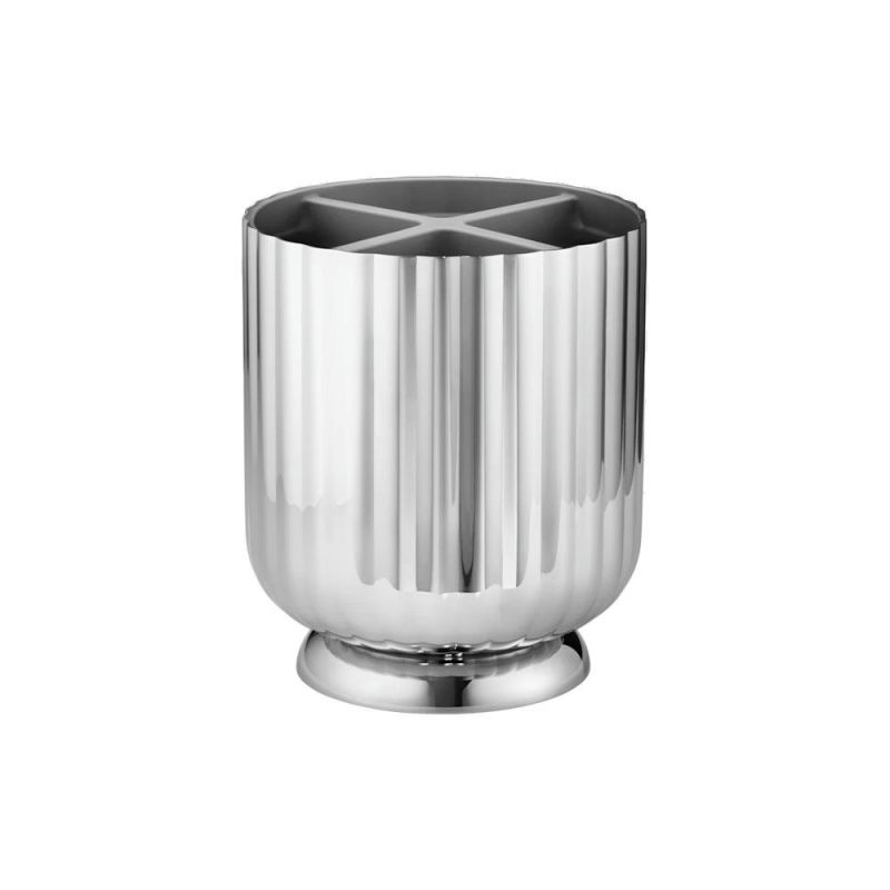 Denna design är perfekt för förvaring av bestick, samtidigt som den gör vardagens kökstillbehör vackrare. Bestickhållaren är tillverkad i rostfritt stål och har Bernadotte-kollektionens populära designspråk med det räfflade signaturmönstret. Bestickhållaren kan rymma upp till sex besticksatser.