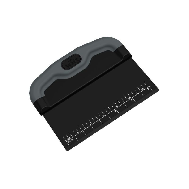 Witt Pizza Degsskrapa - Svart är gjord av slitstarkt rostfritt stål för lång livslängd. Den vassa kanten säkerställer enkel skärning och lyft av deg, samtidigt som det ergonomiska handtaget ger komfort. Perfekt för både pizza och brödberedning, ett oumbärligt köksredskap.