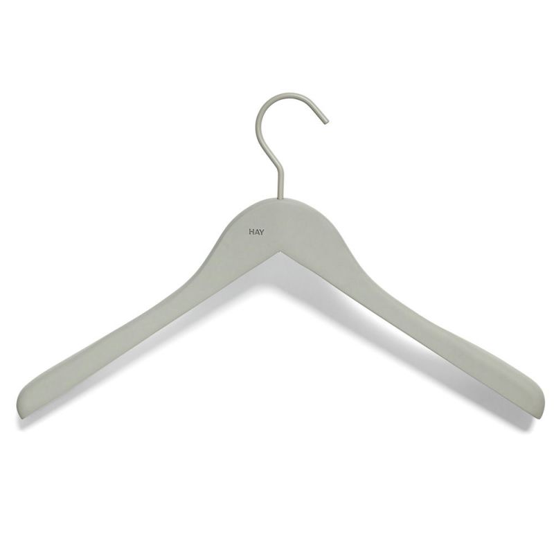 Soft Coat Hanger er en træbøjle med brede skuldre og en mat gummioverflade, der giver ekstra friktion for at holde frakker og jakker på plads.