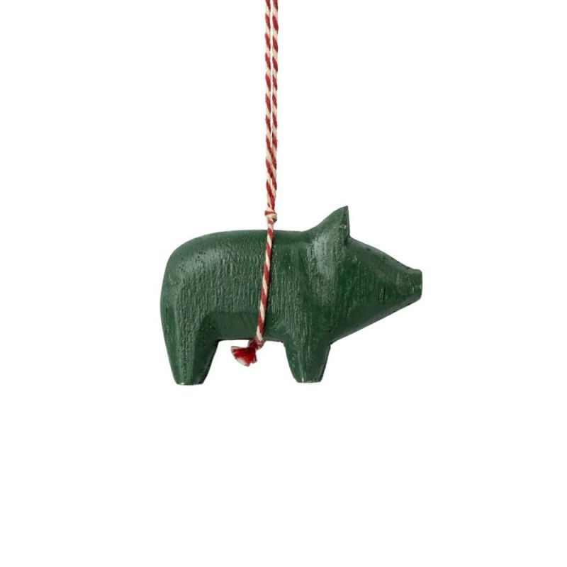 En klassisk Maileg-dekoration i form av en liten trägris, handsnidad och målad. Det matchande snöret fulländar det exklusiva uttrycket och gör den enkel att hänga upp överallt i hemmet.