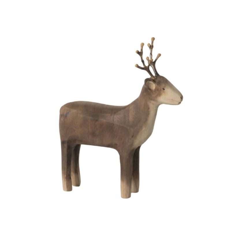 En ny produkt har lagts till de klassiska dekorationerna i trä. Renarna är handskurna, hornen är tillverkade av metall och med en vacker finish. Den är handmålad och kan variera i färgtonen - precis som en riktig ren.