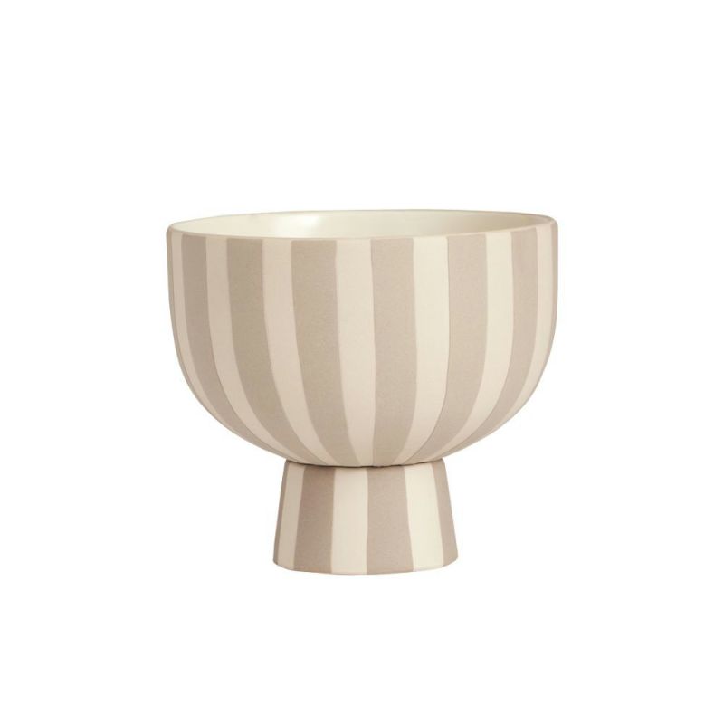 Denna version har ett mjukare och mer naturligt uttryck med jordnära nyanser som ger en stilren, nordisk look. Skålen kan användas både som en dekorativ detalj och för förvaring.