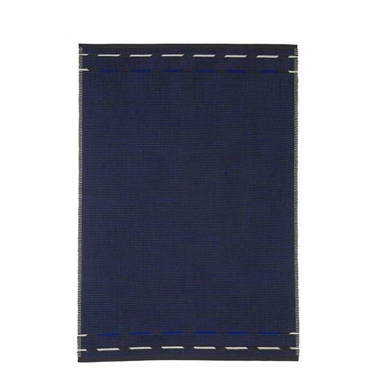 Vibeke Klint mattor VK4 i en vacker plattvävd version, en vacker blå nyans ger ett fint och behagligt djup till inredningen. Mattan är designad av Vibeke Klint som här övar tekniken med "blixtande" detaljer vilket ger en helt unik vävning. Mattorna från Nordic Modern är handvävda, varför varje matta är unik då vävningen varierar något från matta till matta.