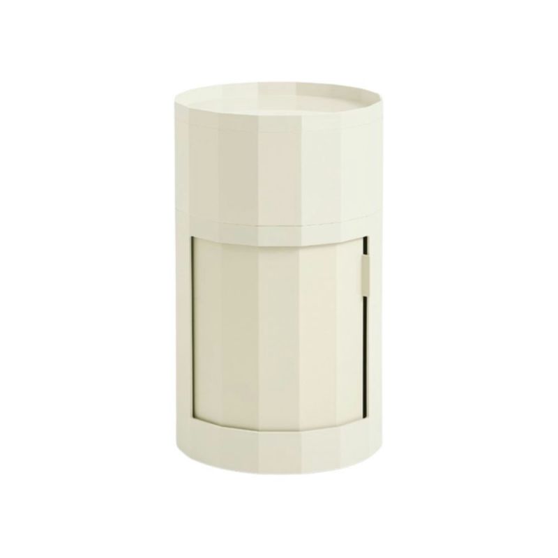 Facet Cabinet är en mångsidig förvaringslösning som är lätt att flytta runt. Namnet kommer från de fasettslipade ytorna, som ger en sofistikerad touch till den minimalistiska designen. Skåpet har en justerbar, integrerad dörr och hjul för extra funktionalitet.
