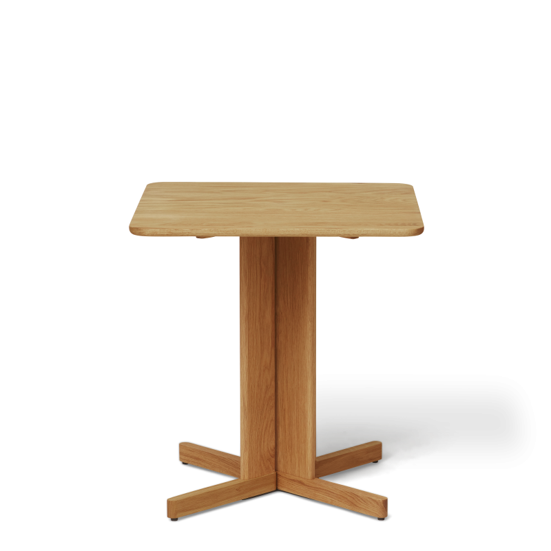 Ett fyrsidigt bord med visuell komplexitet Mittpunkten av fritt svävande massiva ekelement skapar en kontrast mellan lätthet och tyngd. De fyra benen ger fritt utrymme och stödjer bordets lätta uttryck och visuella komplexitet. Deras centrala läge säkerställer gott om plats för alla runt bordet. Quatrefoil-bordet är perfekt för både privata hem och hotell.