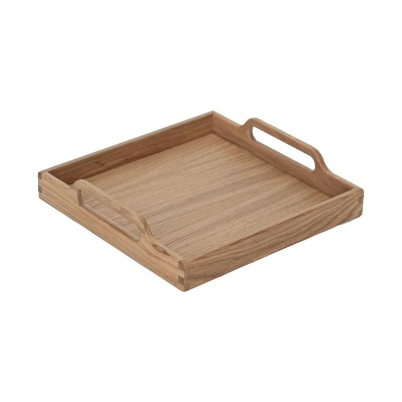 KA11 Bricka elegant och funktionell. KA11-brickan är en fyrkantig serveringsbricka i massiv europeisk ek, designad med fokus på både funktion och estetik. Perfekt för servering eller förvaring, med en slitstark, matt möbellack och en robust konstruktion. Denna bricka är idealisk för både daglig användning och professionella miljöer, och dess tidlösa design gör den till ett stilfullt val i alla hem.