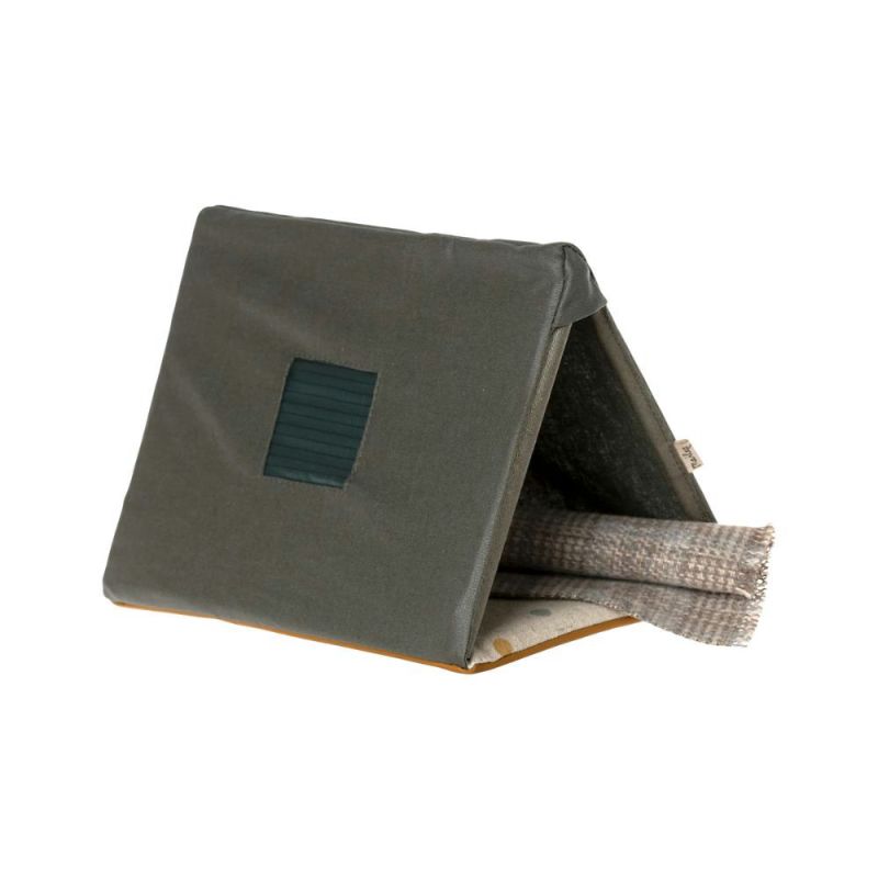 Ta med musen på en campingtur och tillbringa natten under stjärnorna i det hopfällbara tältet. Filten håller din vän varm på natten. Yttertyget har en belagd yta för en mer autentisk look.