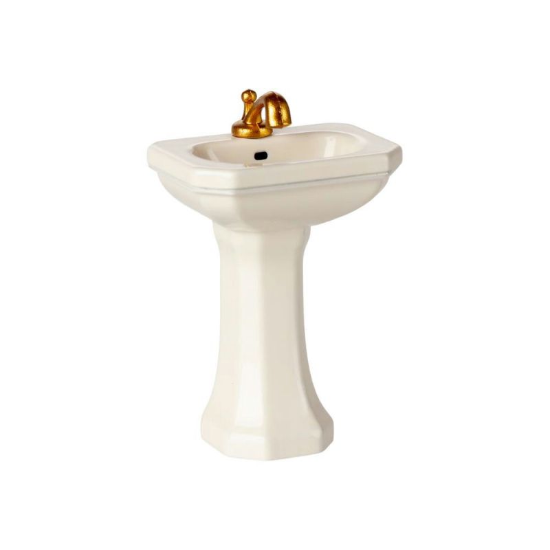 En lille håndvask, der passer til lillesøster- og lillebror-mus. Perfekt til badeværelset i Suitcase-musehuset.