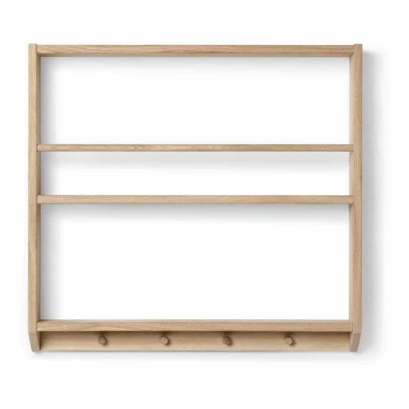 Eli-hyllan är en funktionell hylla i massiv oljad ek som fästs på väggen utan synliga skruvar. Hyllans enkla och vackra design kan användas i alla rum i hemmet. Leksaker, kokböcker eller krimskrams kan förvaras elegant. Denna hylla har en liten, snygg och praktisk klädhängare , som ger extra möjlighet att hänga upp dina saker.