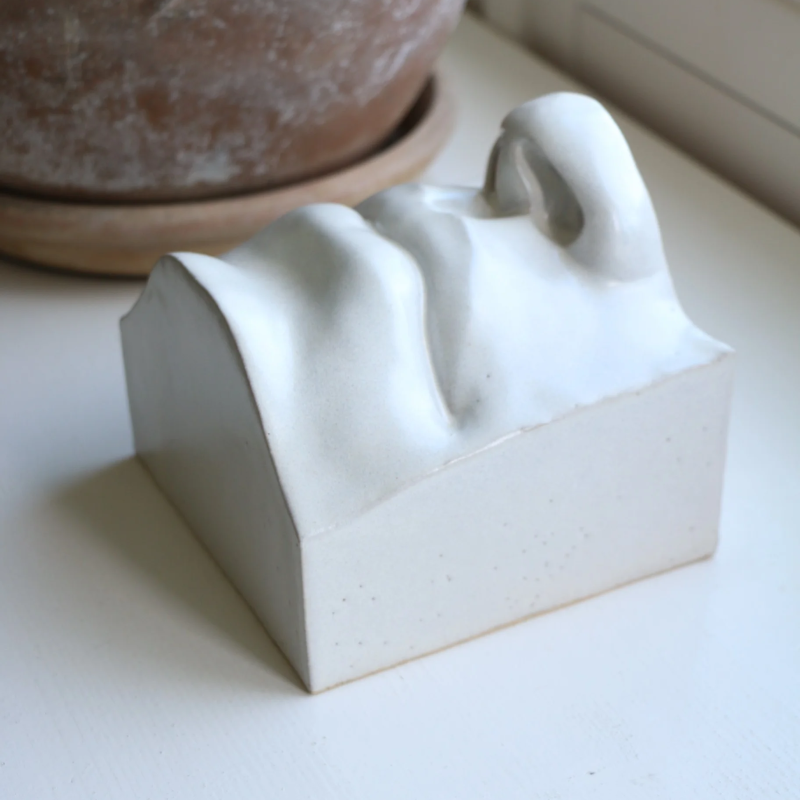 Bokstödsmunns antikvit. Handgjort i Århus med inspiration från antik skulptur. Bookend Mouth förenar funktion och form i ett skulpturalt bokstöd som lika gärna kan stå fristående som ett dekorativt föremål. Placera den i bokhyllan, på skrivbordet, på fönsterbrädan eller häng den på väggen.