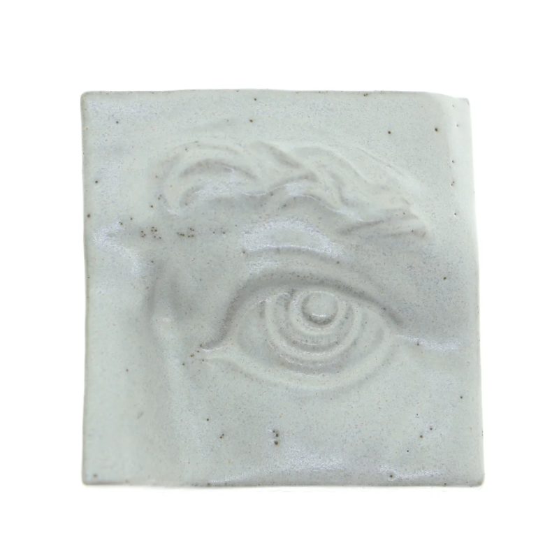 Vänster öga Antikvit. Vänster öga från reliefserien. Handgjort i Århus med inspiration från antik skulptur. Kan hängas på fyra sätt ensamt eller i kombination med andra reliefer och inbjuder till personliga kompositioner på väggen.