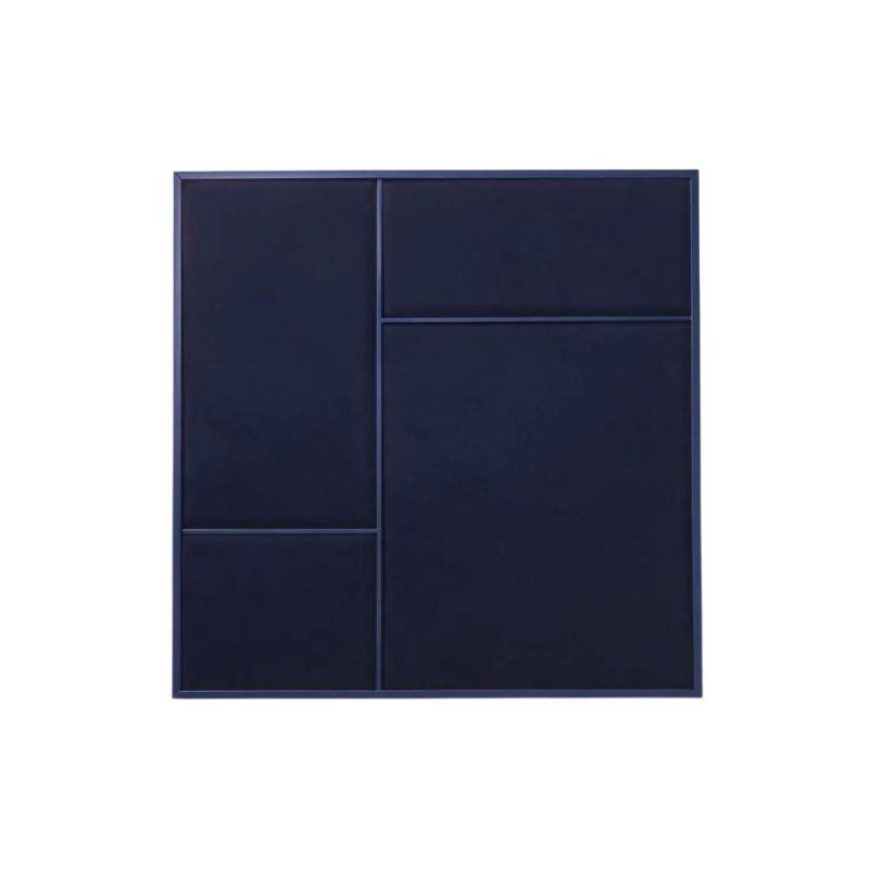 NOUVEAU PIN Anslagstavla Medium, Marinblå. NOUVEAU PIN är en snygg och mångsidig anslagstavla, perfekt för allt från foton och konsertbiljetter till moodboards och anteckningar. Designen är inspirerad av modern arkitektur och jugendstilen, med ett rektangulärt rutmönster och en exakt kantprofil. Tavlan finns i tre storlekar, alla med en gemensam skala på ena sidan, vilket gör det enkelt att kombinera flera brädor till ett personligt mönster som är perfekt för både hemmet och kontoret. Den har en diskret greppkant runtom och levereras med dolda monteringsfästen. Skivan har också en ljudabsorberande effekt, vilket bidrar till en lugn atmosfär.