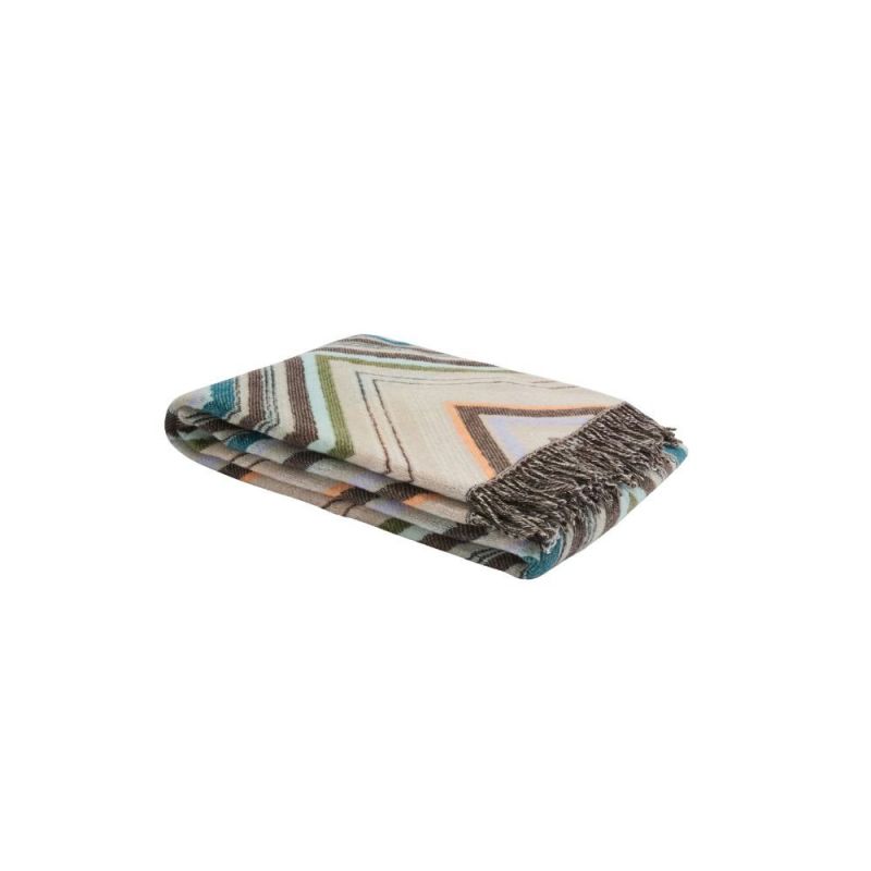 Med sitt iögonfallande chevron-mönster och eleganta fransar är denna pläd från MissoniHome ett stilfullt och mysigt tillskott till varje inredning. Tillverkad i en mjuk ullblandning som kombinerar värme och estetik på bästa sätt, gör den varje avslappnande stund till en upplevelse av ren komfort och förfinad elegans.