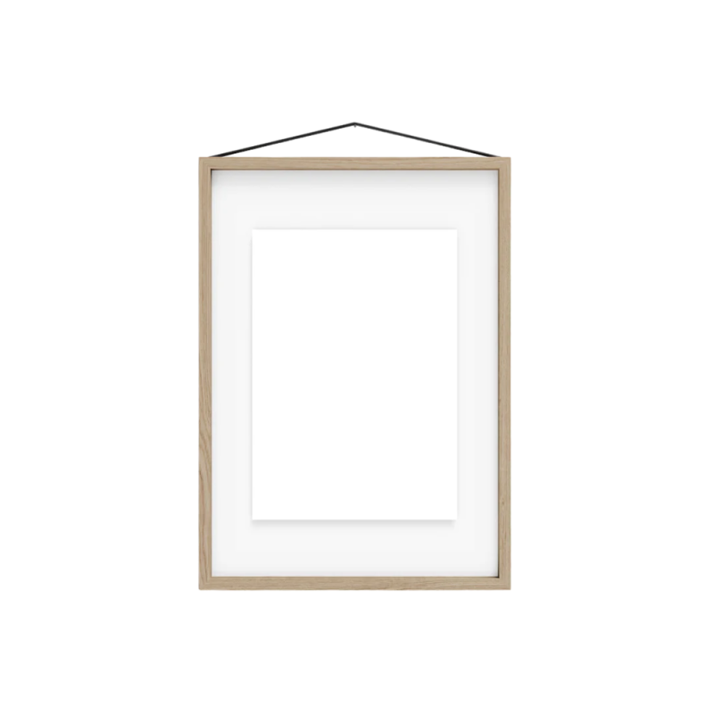 MOEBE Frame enkel och flexibel fotoram i björk med transparent akrylglas och gummiband. De två nya färgerna framhäver träets naturliga ådror, och gummibandet matchar färgen. Ramen kan hängas vertikalt eller horisontellt och ses från båda sidor, perfekt för bilder och konst i alla storlekar.