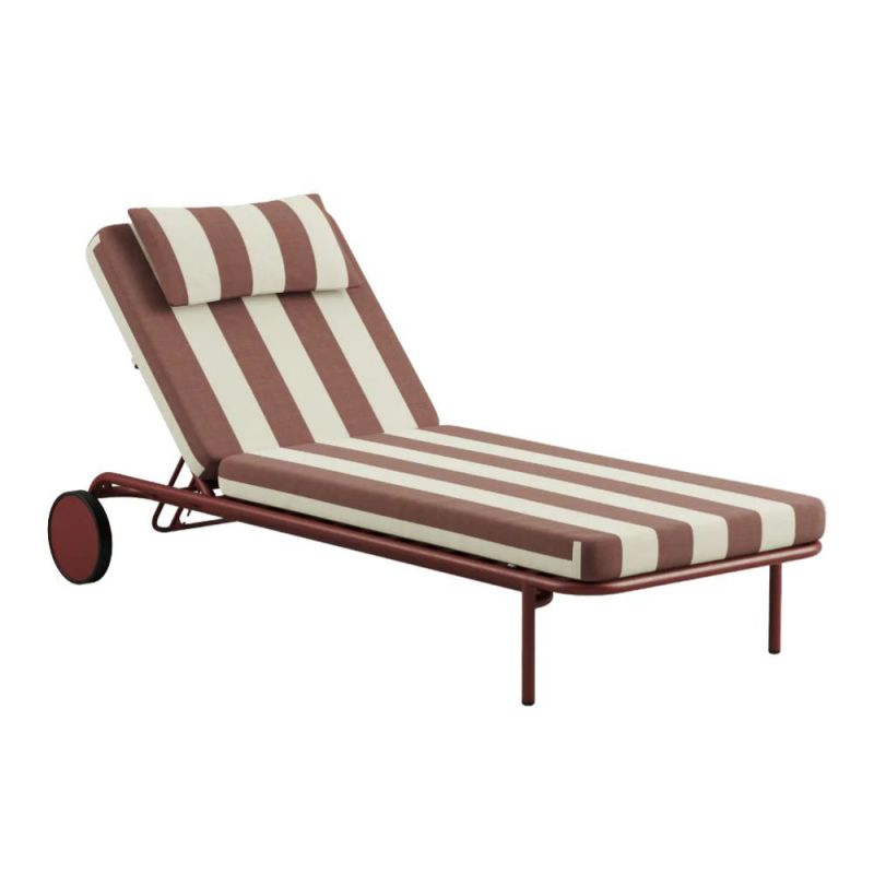 Mollis Sunbed klassisk solsäng med modernt uttryck. Inspirerad av gamla badhotell, men med stramare, samtida design. Perfekt för avslappnade timmar i solen, när tempot är lugnt. Ryggstödet kan justeras, så att du kan ligga helt ner eller sitta upp med en bok eller kaffe. Komforten är inbyggd, så att formen och uttrycket bevaras, även vid längre användning. Solsängen har en pulverlackerad aluminiumstomme som inte rostar, och slitstarka textilier med hög ljusäkthet (78). Dynorna med Quick Dry Foam torkar snabbt efter regn och kan stå ute hela året utan förvaring.