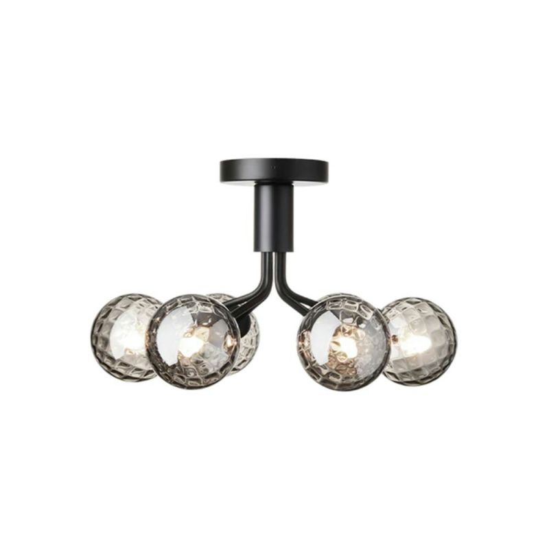 Apiales 6 Taklampan består av 6 kupoler av opalglas med var sin glödlampa som ger ett lugnt och välfördelat ljus, lämpligt för både matsalen, kontoret, vardagsrummet eller sovrummet.