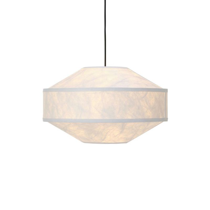 Kite är en lek med proportioner och abstraktion, en design som förenar rena, geometriska former med en smidig och taktil materialitet. Samma strukturella principer går igen i tre olika storlekar, som variationer på samma tema, var och en med sitt eget uttryck. Fina kantband framhäver silhuetterna och tillför teknisk finess, vilket ger lamporna både djup och kontrast. Oavsett om de hänger tillsammans eller var för sig, framstår Kite-hängen som skulpturala ljuskällor i rummet.