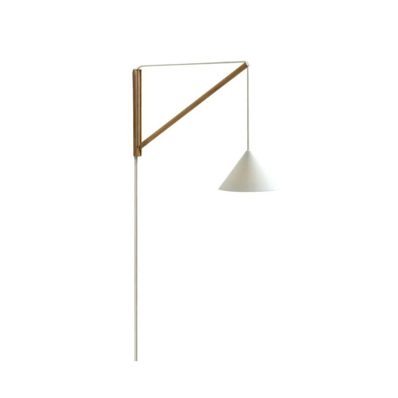 Suspended Wall Lamp är en skulptural vägglampa som kan justeras i både höjd och avstånd från väggen. Lampan består av ett väggfäste i massiv ek, en rostfri stålvajer, en roterbar arm och en kabelskärm. Konstruktionen gör det möjligt att enkelt höja, sänka eller justera lampans position. Tillverkad i EU av FSC-certifierade och EU Ecolabel-godkända material.