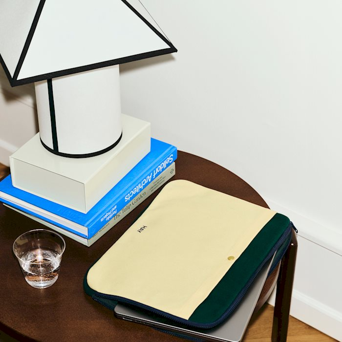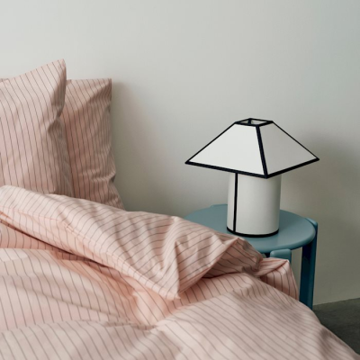 Ava Pyramid Table Lamp designet av Ana Kra for HAY. En moderne tolkning av den klassiska bordlampa med pyramidformad, semi-transparent bas i ECOPET (återvunnen PET-plast) och kontrasterande tygkant. Lampan ger ett mjukt, stämningsfullt ljus och passar perfekt på hyllor, fönsterbrädor eller bord i vardagsrum, sovrum och hallar. Inkluderar HAY Common Cord Set och använder utbytbar, dimbar LED-lampa.