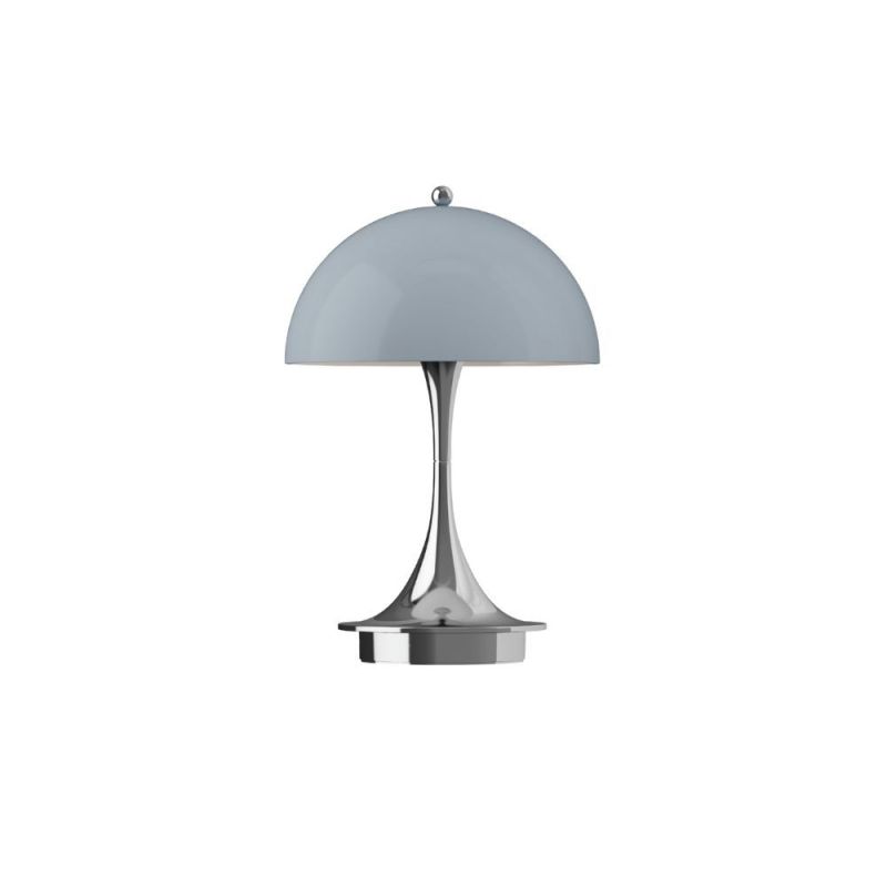 Panthella speglar Verner Pantons stora personlighet och anses vara ett av hans mest betydelsefulla designer. Han ville skapa en bländfri lampa som samtidigt reflekterade ljuset genom sina organiska former. Detta mål uppnådde han 1971 i samarbete med Louis Poulsen. Den ikoniska formen säkerställer en mjuk ljusreflektion via skärmen och den trumpetformade foten, vilket har gjort Panthella till en designikon. Panthella 160 Portable är en kompakt version med en diameter på 160 mm, idealisk för flexibel användning både inomhus och utomhus, där den skapar en stämningsfull belysning. Detta är 100-års Jubileumsutgåvan.