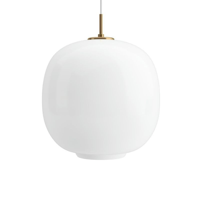 Louis Poulsen relanserade det unika och världsberömda Radiohuset hänget 2016. Hänget designades ursprungligen av Vilhelm Lauritzen 1945 för radiohuset i Köpenhamn. Hänget är tillverkat av handblåst opalglas med en upphängning av borstad mässing. Mässingen är inte ytbehandlad och kommer att förändras med tiden och få en unik patina.