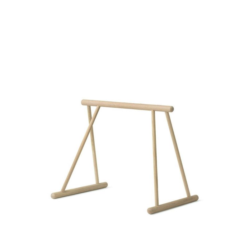 Placera bebisens favoritleksaker på det fina aktivitetsstället och skapa en mysig liten värld där de kan tillbringa många bra timmar tillsammans. Barnet tränar sin öga-hand-koordination genom att titta på den vackra aktivitetsleksaken och sträcka sig efter den. Därför kan föräldrar också - med gott samvete - lämna den lilla ifred en stund medan de får middagen i ordning. Det är enkelt och enkelt att byta ut leksaken, då de 5 avlånga hålen passar de flesta aktivitetsleksaker. På så sätt kan den bytas ut i takt med att barnet utvecklas och den kan föras vidare till nästa generation, som kommer att förse den med sina leksaker. Aktivitetsstället består av en stark och rejäl träkonstruktion, så inte ens den mest ivriga och ihärdiga bebisen kan välta den. Wood babygym är en del av Wood Collection, som kännetecknas av rundade former och en naturlig lätthet.
