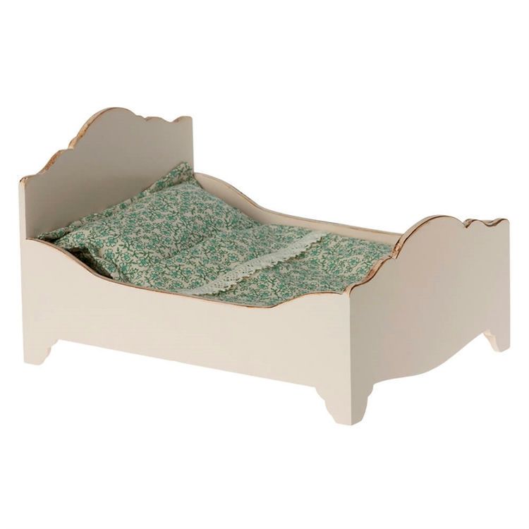 De små mus vil elske at sove i denne træseng, som er udstyret med en dejlig madras og unikt Maileg-linned.