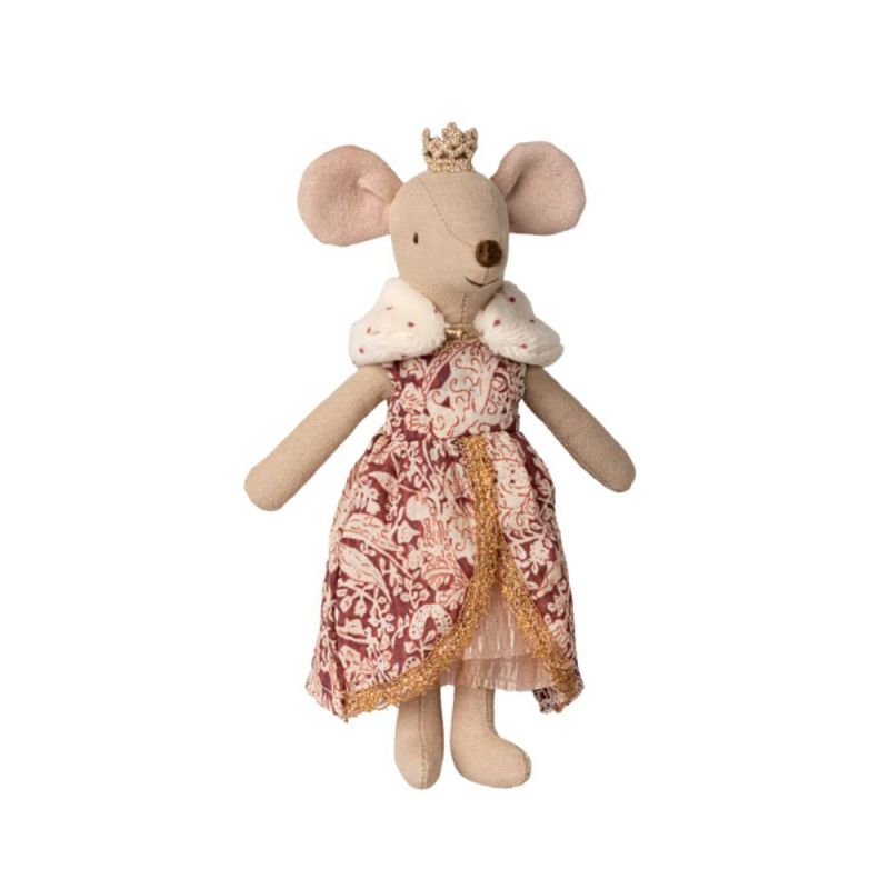 Drottningmusen i storlek Mor är redo att vara värdinna på sitt slott. Hon har en vacker kunglig klänning och krona på sig och passar perfekt in i slottsalen.