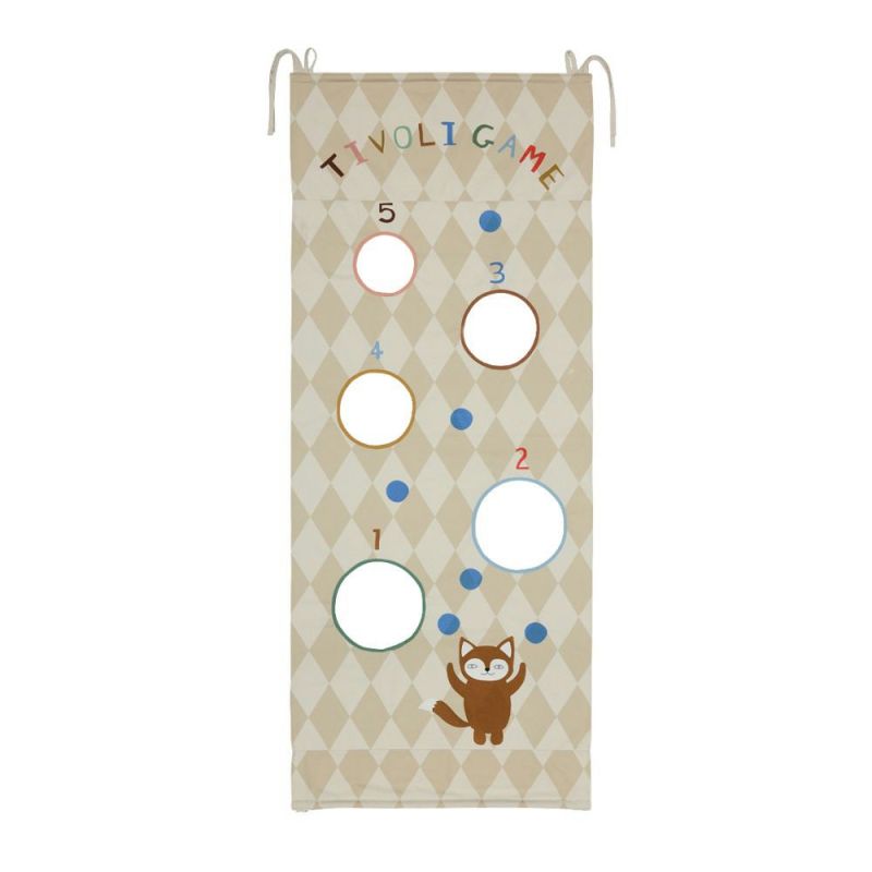 Tivoli Game Door tar med klassisk tivolilek in i hemmet med sin lekfulla karnevalsinspirerade design. Häng det i en dörröppning med tygremmar perfekt på en teleskopstång och turas om att kasta bollar genom de numrerade hålen för att samla poäng.