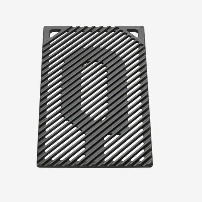 Opgrader din FURNACE gasgrill med denne centergrillplade i mat støbejern. Den har en integreret flammeskjuler og et unikt design, der sikrer perfekte grillstriber, mens de smarte fingerudskæringer gør den nem at håndtere.