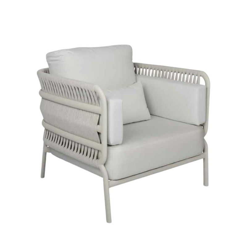 Mindo 106 loungestol är designad för rymlig komfort med gott om plats att dra upp benen. Det italienska repflätet och aluminiumramen framhäver både det fina hantverket och den eleganta stilen i denna ikoniska utomhusstol.