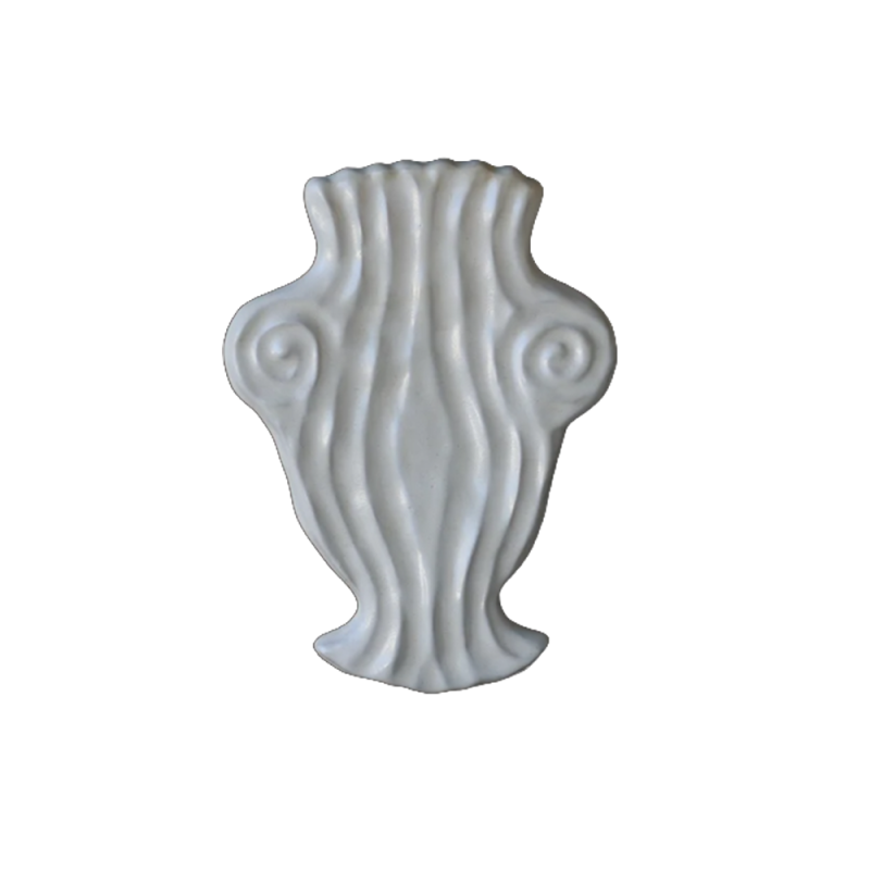 Varje verk gjuts och efterbearbetas för hand i glaserat stengods med mjuka variationer i antika nyanser och är skapat med avsikt att ingå som ett väggmonterat element.