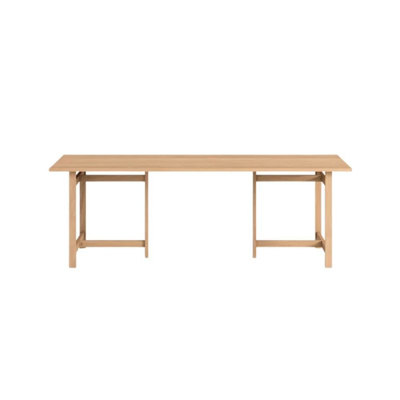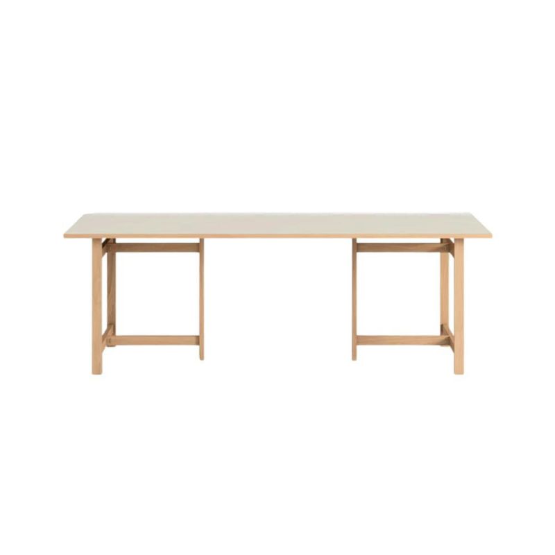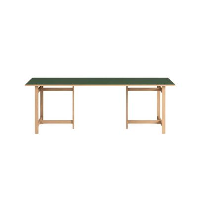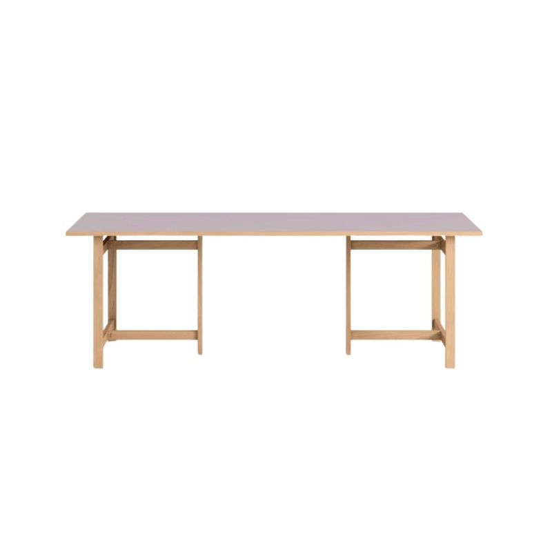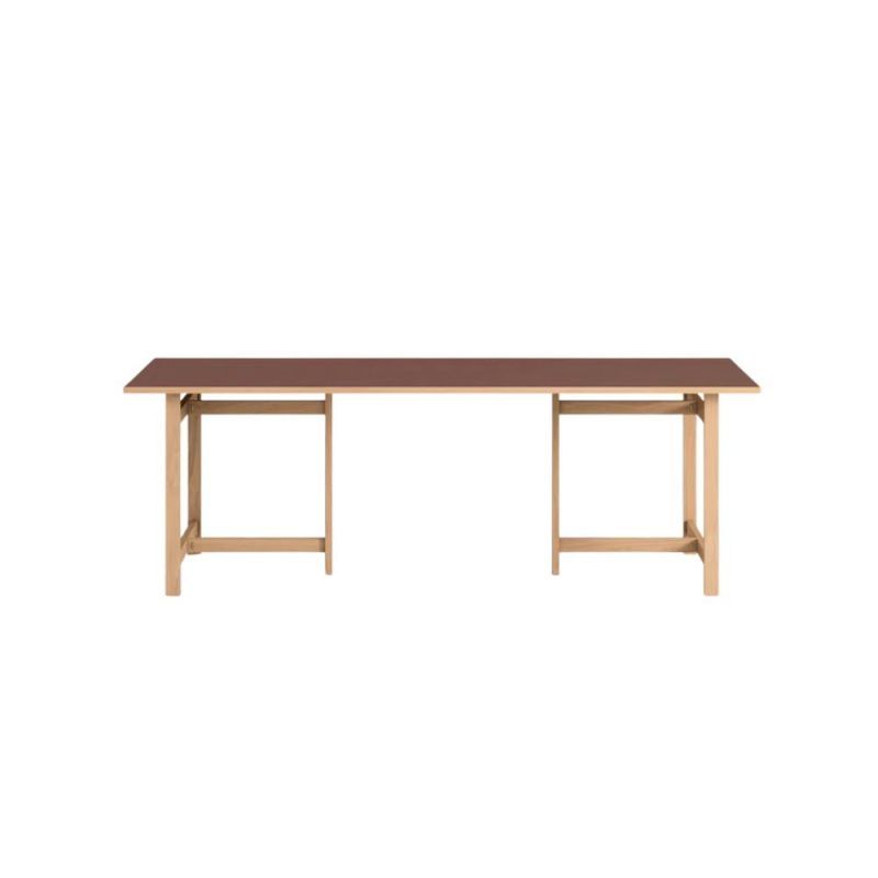 MOEBE Rectangular Dining Table är ett enkelt och elegant matbord med en solid T-ramkonstruktion och fina mässingsdetaljer. Bordet är FSC-certifierat, producerat i Europa och levereras flatpack för enkel montering. Finns med linoleumyta i rött, grönt eller mushroom samt i klassisk ek. Köp till upp till två förlängningar en i varje ände för att utöka bordet med 20 eller 40 cm.