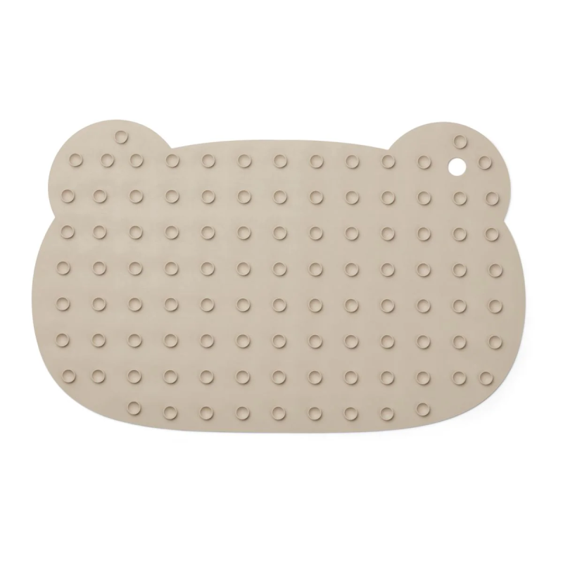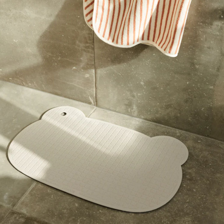Den söta och praktiska björnformade badmattan i naturgummi ger ett halkfritt underlag att stå eller sitta på i duschen och badkaret. Små sugkoppar ser till att mattan sitter kvar under badet.