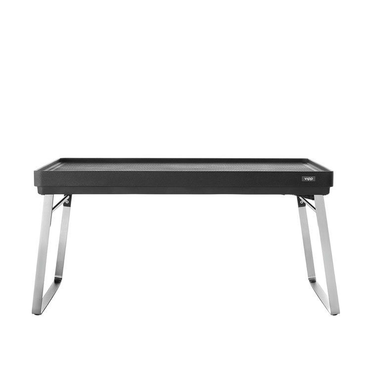 Vipp mini table er som resten af Vipp kollektionen fremstillet i kvalitetsmaterialer samt designet er enkelt og tidsløst. Vipp mini table er velegnet til at servere morgenmad på sengen, som computerbord i sofaen eller som et lille serveringsbord som er nemt at flytte rundt med. Ja, mulighederne er mange. På toppen er Vipp mini table udstyret med en aftagelig gummimåtte som er nem at rengøre. Bordet er særdeles stabilitet og kan nemt klappes sammen så det ikke fylder noget.