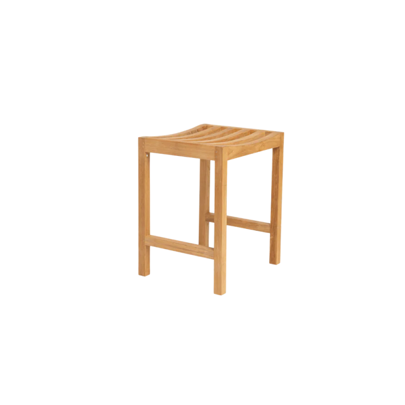 Bekväm arbetspall med böjt säte i slitstarkt teakträ.