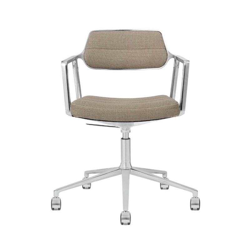 Vipp presenterar stolen Swivel+, en höj- och sänkbar och extra vadderad version av den klassiska designen. Perfekt för hemmakontor och mötesrum, med ett större ryggstöd och bekväm sits. Stolen har en fembent bas, med antingen hjul eller golvglidar, och ger 360° rotation.