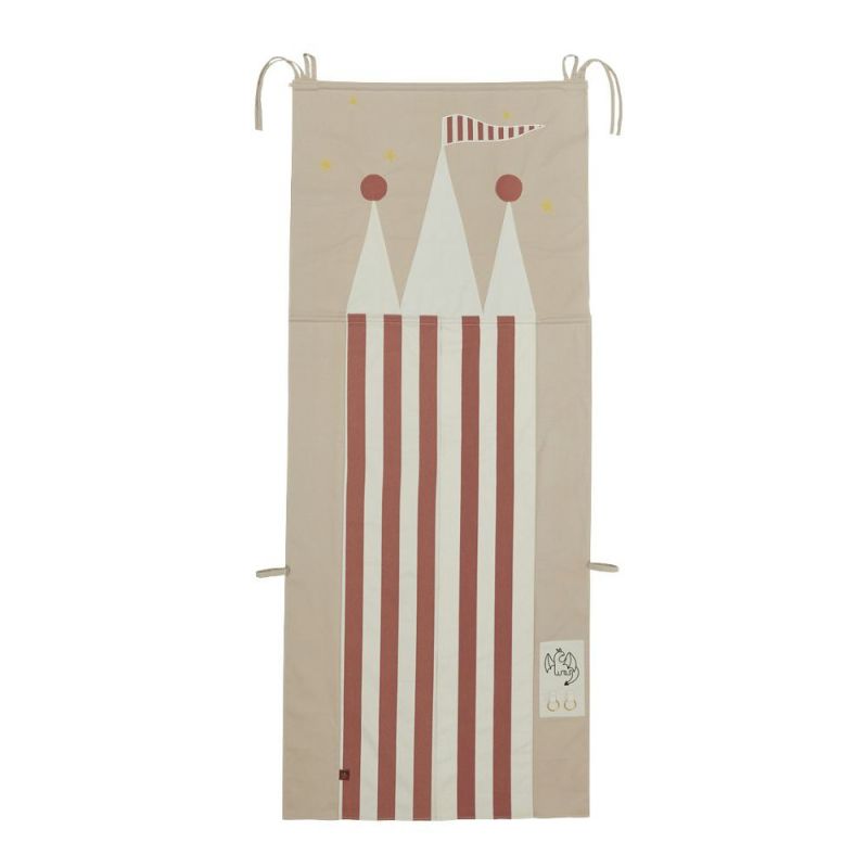 Slottsdörren förvandlar vilken dörr som helst till ett magiskt lekområde. Häng upp den med remmarna eller en teleskopstång för enkel installation. Perfekt för fantasifull lek, dekorerad med ett charmigt slottsmotiv och en särskild plats för att fästa din drake när du besöker slottet.