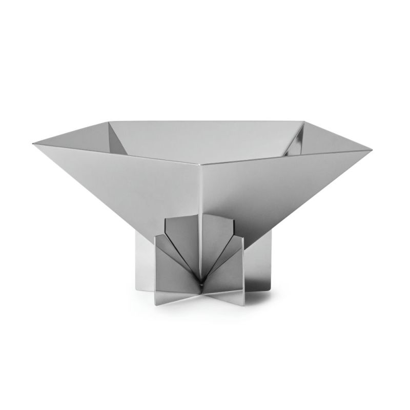 Handgjorda i spegelpolerat rostfritt stål, Fem Bowl presenterar en dekorativ, geometrisk design. Skålen är uppkallad efter det danska ordet för siffran fem och består av fem triangulära bitar vilande på en femkantig bas, handsvetsad av stål. Oavsett om den används som dekoration eller praktisk skål, lägger Fem Bowl elegans till varje interiör.