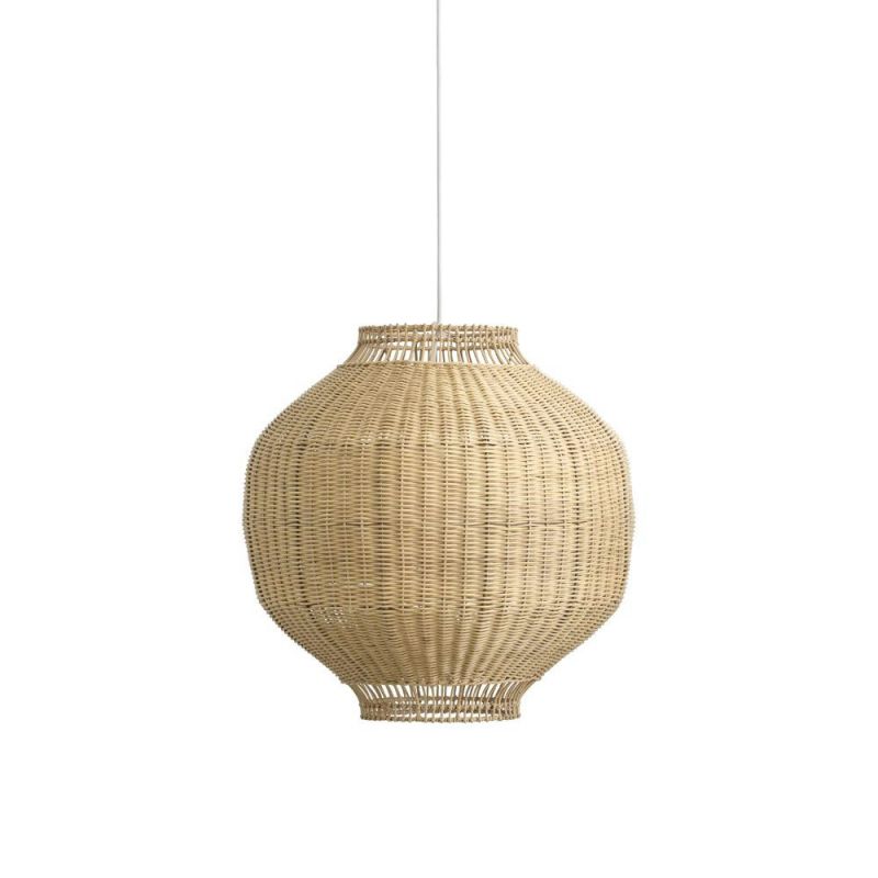 Tomori lampskärm, designad av Jin Kuramoto, är en elegant kombination av hantverk och funktionalitet. Den är omsorgsfullt handgjord av indonesisk rotting och stöds av en invändig stålram, vilket säkerställer en stabil och välbalanserad fjädring. Med sitt vackra ljus bidrar Tomori till en varm och inbjudande atmosfär, vilket gör den idealisk för hallen, sovrummet eller som en stämningsskapande lampa ovanför köksbordet eller till och med i ett täckt uterum.