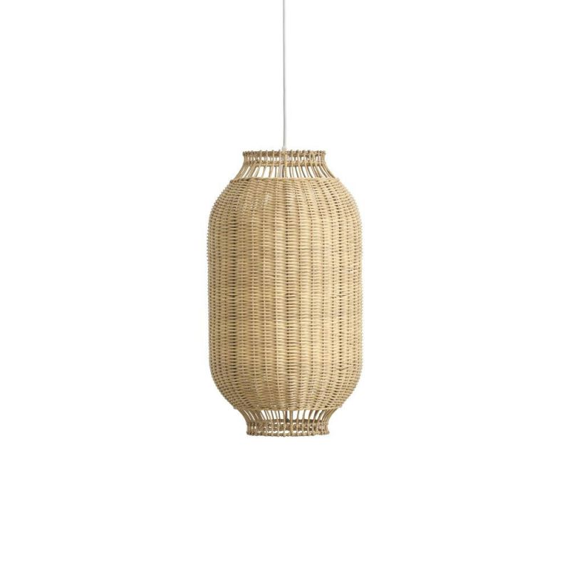 Kou lampskärm, designad av Jin Kuramoto, är en elegant kombination av hantverk och funktionalitet. Den är omsorgsfullt handgjord av indonesisk rotting och stöds av en invändig stålram, vilket säkerställer en stabil och välbalanserad fjädring. Med sitt vackra ljus bidrar Kou till en varm och inbjudande atmosfär, vilket gör den idealisk för hallen, sovrummet eller som stämningsskapande ljus ovanför köksbordet eller till och med i ett täckt uterum.
