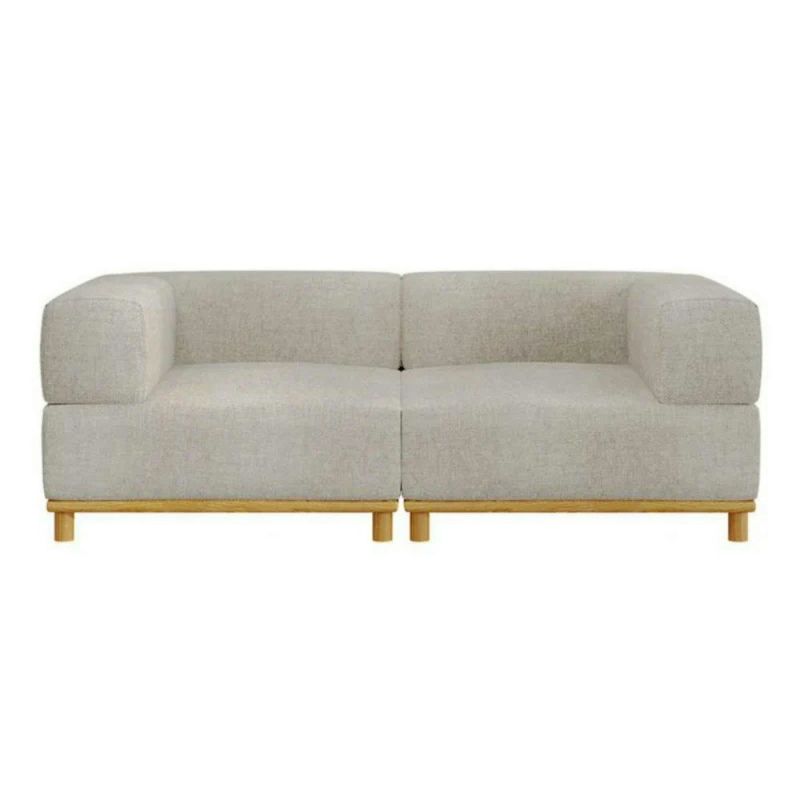 Elegant inomhussoffa i ull. AYA 2-Seater Sofa framhäver en synlig träram och eleganta ben, som utstrålar rena linjer och expert-hantverk, vilket gör den till ett minimalistiskt och stilfullt val för varje vardagsrum. Modulär flexibilitet: Tillverkad av två hörnmoduler, är soffan kompakt men rymlig och kan anpassas både som fristående möbel och som en del av större arrangemang, vilket möter behoven i moderna hem.