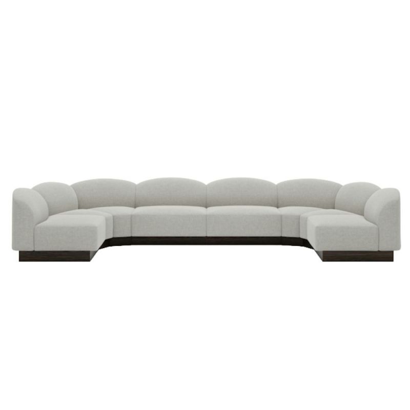 Som en elegant vidareutveckling av Shore lounge-serien introducerar Shore Modular Sofa en modulär struktur som möjliggör mångsidiga konfigurationer. Ryggstödets mjuka båge speglar vågornas graciösa rörelser över havet och leder blicken mot de elegant integrerade armstöden. Shore Modular Sofa är utförd med noggrann uppmärksamhet på detaljer och omsluter dig i komfort, samtidigt som den behåller sin flytande precision. Packshots visar klädsel i Romo Ruskin Quill, Kategori B.