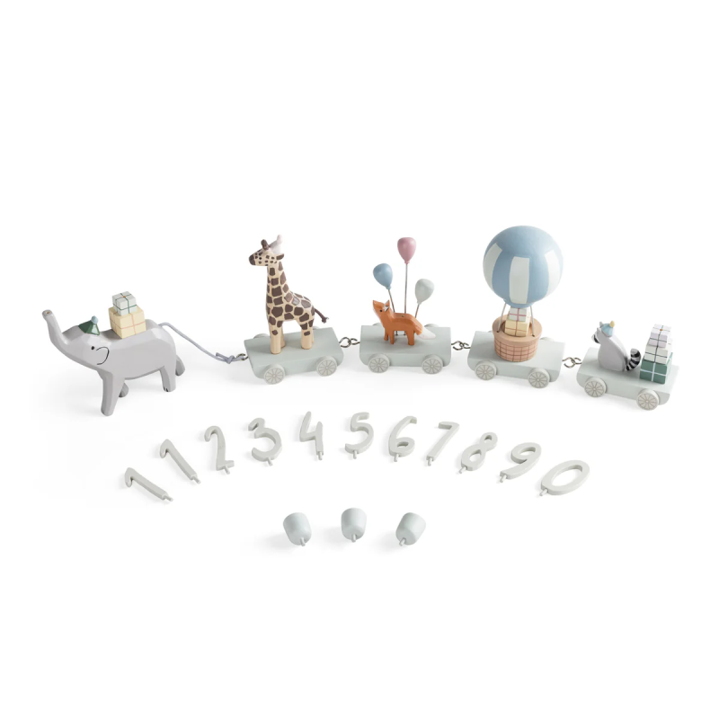 Gör födelsedagen extra festlig med Sebras fantasifulla födelsedagståg, en charmig djurparad dragen av en stolt elefant med snabeln i luften. Tåget består av fyra vagnar med figurer från World of Sebra , som du kan montera själv. Tåget har plats för både de medföljande siffrorna (09) och tre ljusstakar, där vanliga julgransljus (Ø 1,2 cm) passar perfekt. Använd det för att markera födelsedagspersonens ålder och skapa en tradition som kan upprepas år efter år. Födelsedagståget är handgjort, vilket ger varje set ett unikt uttryck. Det kommer i en vacker förvaringslåda och är en del av Sebras 20-årsjubileumskollektion. En perfekt gravid- eller doppresent som kan ge glädje i många år framöver.